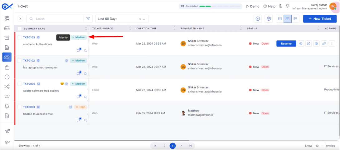 <img src="https://8249392-files.gitbook.io/~/files/v0/b/gitbook-x-prod.appspot.com/o/spaces%2FE4mkwSP8a1BSD9BFNFav%2Fuploads%2FPqetB3T1lAbmlv3FNbEl%2F17.png?alt=media" alt="Right pointing backhand index" data-size="line">The **"Show entries"** option at the bottom of the page enables users to customize the number of tickets displayed per page, ranging from 10 to 200.